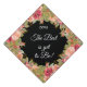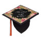 Elegant Graduation cap topper is bordered in beautiful hand painted, watercolor roses. The roses look stunning against a solid black background. Center reads "The Best is yet to be" and it also has the year of Graduation to personalize it. All typography is in white.