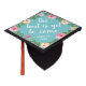 Cute grad cap topper features the quote "the best is yet to come" in white brush script lettering on a vibrant turquoise aqua background adorned with pink watercolor flowers and green foliage. Personalize with your class year.