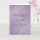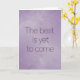 Offer a comforting message of future optimism with this serene card. The quote, "The best is yet to come," is centered in a gentle, complementary purple font. The background is a soft, dreamy lavender and lilac ombre with a subtle, painterly texture and faint sparkling details, evoking a feeling of calm and promise. This card is perfect for sending encouragement and hope during tough times, celebrating new beginnings (like a job or move), or as a thoughtful thinking of you note. Its soft, elegant colors and simple typography make it a sophisticated inspirational gift.