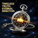 Bring a high-energy and reverent atmosphere to your home with this beautifully designed script-style pocket watch. The central face features a high-definition graphic of an open Bible beneath a glowing golden cross, accompanied by the elegant title "The Bible" and the meaningful acronym "basic instructions before leaving Earth." While the artwork masterfully mimics the appearance of a polished navy-blue dial with golden bead-style markers and raised metallic text, this is a lightweight and durable graphic timepiece rather than actual gold-plated metal or heavy glass. The large, cream-colored numeric markers provide a professional and polished contrast, ensuring the time is easy to read at a glance. This timepiece serves as a sophisticated focal point for a Christian making it a perfect self-gift for those who value high-quality spiritual art and daily scriptural inspiration.
