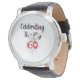 Celebrating the Big 60, watch, with large white face with large print in black and red letters.