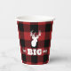 Buffalo plaid paper cup featuring The Big One and drop tine deer. Perfect for a hunting theme first birthday party!