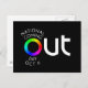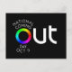 A bright color wheel 'O' in the big OUT of National Coming Out Day, October 11, catches the eye. Gay, queer, lesbian, bisexual, transgender, and straight ally - this is our world, too. Come out!