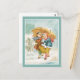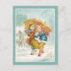 A charming vintage design, two girls under a large umbrella, brave the winter weather, and are out walking in a snow storm, and seem to be really enjoying it too! A spray of holly completes the picture. Change the text to suit your needs.