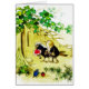 Charming watercolor illustration by Fritz Baumgarten from the book " Die Vogelhochzeit", translated "The Bird Wedding". Published in 1900, the story is built on a famous German song written in the 18th Century about a blackbird, the groom, and a thrush, the bride, who marry and have their wedding in the green forest.