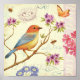 © Daphne Brissonnet / Wild Apple. A colorful bird perched on a branch. There are flowers and butterflies on the image as well.