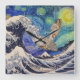 Unique art collages of the world masterpieces, The Birth of Venus by Sandro Botticelli (1445 - 1510), The Starry Night by Vincent van Gogh (1853 - 1890), and The Great Wave off Kanagawa by Katsushika Hokusai (1760-1849).