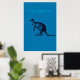 The Blue Kangaroo Modern Wall Art with the image of a Kangaroo in black against a colorful background with the word "Kangaroo". Looks excellent in any modern living room decor.