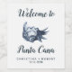 Wine label features a vintage watercolor illustration of a seashell with your names, wedding date and welcome message.