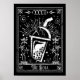 Grunge tarot card design for boba tea lovers! The Boba. White and black illustration with a to-go boba tea with dancing skeleton, stars, and lightening.