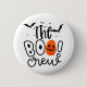 This holidays design features the text "The Boo Crew" in popular modern typography accented with bats and a pumpkin. Perfect for trick or treating and Halloween parties. #halloween #boo #crew #boocrew #modern #holidays #seasonal #festive #black #orange #typography #cute #fun #trendy #trending #style #stylish #fashion #fashionable #popular #accessories #buttons #partysupplies #gifts