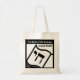Tote bag with the black and white logo of The Book of Life Podcast.
