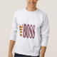 Sweatshirt with a humorous and bold text design in brown. Alma Wad's unique design is great for any wannabe boss at home or at work.