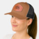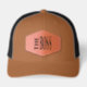 Custom Leather Patch Hat, Sytle: Adult Retro Trucker Cap, Color: Heather / Black, Shape: Circle