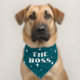 The Boss Star Pattern Funny Dog Pet Bandana Collar. A funny quote The Boss. The background is a pattern with white stars. For the dog who’s in charge.