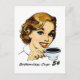 Retro housewife holding cup of morning coffee. "Bottomless Cup five-cents"
