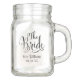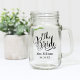 Wedding mason jars feature a stylish "The Bride" in script writing with custom black text that can be personalized for the new Mrs. with her married name and wedding date. Shop our store for the matching The Groom mason jar.