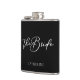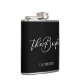 This chic, simple bride flask features your name under minimalist white typography on black reading THE BRIDE. Customize this elegant, modern bridal gift for your wedding or bachelorette party.