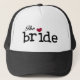 Black text and a small red heart The Bride hat, great for future brides and new brides!