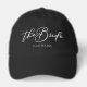This chic, simple bride black cap features your name underneath elegant typography reading The Bride. Customize these elegant, modern bridal party hats for your wedding.