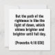 But the path of the righteous is like the light of dawn, which shines brighter and brighter until full day. (Proverbs 4:18 ESV)