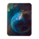 The Bubble Nebula, NGC 7635. The seething star forming this nebula is 45 times more massive than our sun. Gas on the star gets so hot that it escapes away into space as a stellar wind moving at over 4 million miles per hour. This outflow sweeps up the cold, interstellar gas in front of it, forming the outer edge of the bubble. As the surface of the bubble's shell expands outward, it slams into dense regions of cold gas on one side of the bubble. This asymmetry makes the star appear dramatically off-center from the bubble, with its location in the 10 o'clock position. Dense pillars of cool hydrogen gas laced with dust appear at the upper left.