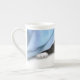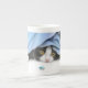 Original fine art design of a curious Tuxedo kitten stalking a bug by artist Carolyn McFann printed on a dishwasher and microwave safe bone china mug for cat lovers.