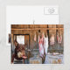 Another cute photo in the anthropomorphic postcard series: The Adventures of Ally, The Australian Kelpie dog. Here she is dressed as a butcher. She's in front of the butcher shop and her work station has two chopping blocks, a knife, and choice cuts of meat hanging for sale. Hurry though, Ally's licking her chops, so she just might keep the best for herself! Photographer: Louise Docker