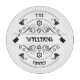 Bring a classic, artisanal feel to your food prep with this round tempered glass cutting board. Featuring a striking black-on-white design, it combines delicate floral scrollwork with bold butcher cleaver accents for a unique, professional look. Customizable with your family name, this non-porous and scratch-resistant surface is as functional as it is decorative, making it an excellent choice for a personalized wedding gift or a stylish statement piece for your own kitchen.