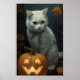 This AI Art image captures the spooky essence of Halloween with a beautifully rendered oil painting of a cat sitting next to a glowing jack o' lantern. The use of bold brushstrokes and rich colors creates a hauntingly beautiful image that is perfect for any lover of the holiday. The intricate details in the cat's fur and the pumpkin's carved face draw the viewer in, inviting them to become lost in the painting's eerie charm. Hang this artwork in your home to add a touch of Halloween magic to any room, or give it as a gift to someone special who adores the holiday.