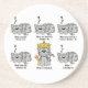 I'm not sure how much moisture these will soak up, haven't had a chance to try them out, but they look good and I like the cork backing. The printing is fine ~ and really looks cool with an artisan's hand made "Hurricane Martini" glass sitting on top of my painting (on the coaster) in my studio.