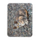 A wild gray street cat sits on gray gravel stones on the Canary Island of Gran Canaria in Spain