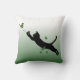 A black cat with green eyes jumping in the air trying to catch a beautiful green butterfly.