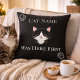The Cat Was Here First Name Custom Throw Pillow