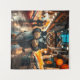A dapper cat, dressed to the nines in a suit and fedora, confidently strides through a bustling fish market, clutching a freshly caught salmon. His stern expression and air of authority suggest he's not someone to be trifled with.