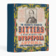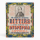 Bust-length portrait of a man at the center of an advertisement for Celebrated Oxygenated Bitters. An elaborate decorative border with eye at top center.