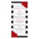 The chic modern luxe wedding collection features a classic black and white stripe background accentuated with beautiful ruby red roses and a faux silver foil frame.