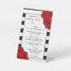 The chic modern luxe wedding collection features a classic black and white stripe background accentuated with beautiful ruby red roses and a faux silver foil frame.