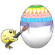 The two yellow chickens paint a beautiful Easter egg for the egg hunt.