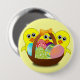 This Easter basket is brown in color with a yellow bow on the top. The eggs in the basket are colorful with stripes and designs. The chicks are claiming this to be there basket. This pin comes in multiple sizes with vibrant colors. A size for everyone.
