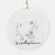 Lightweight, smooth, pure white ornament with nice sheen. Perfect size to be seen from across the room ... and to attract closer inspection! Price was great for ordering enough for the whole family! Clear, bold black design just as requested. Matches the order exactly. Just so nice!