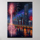 New Year's Day in the city by the ocean and with firework in the sky. This is a AI generated art.