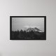 A black and white photograph of Mount Rainier. In the foreground are rows of trees, and at the base of Rainier are hills. The snow covered volcano has a large, interestingly shaped cloud behind it. To some it looks like an antique rendering of a space ship, to others it's a human shape. What does the cloud look like to you? Image Copyright ©2023 Kimberly J Tilley. zazzle.com/store/developingnature