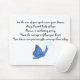 The mouse pad is durable and thick. Great detail in the printing. The butterfly is a vibrant blue and the printing is high quality.