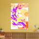 Here's a very unique and colorful abstract design to build your home or office decor around. It features our abstract interpretation of "the conversation" featuring two abstract figures and colorful swatches and circles of orange, yellow, purple, and white both making up the figures and serving as the background. Very cool and stylish stretched canvas print design - measures 24"x36".