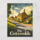 A serene and nostalgic depiction of the Cotswolds, an enchanting region in southwestern England known for its picturesque villages and rolling countryside. The design captures the region's charming stone cottages, lush green meadows, and scenic landscapes, with iconic features like honey-colored stone buildings and quaint market towns such as Bourton-on-the-Water and Chipping Campden. Rendered in a vintage style, the artwork evokes the timeless charm and pastoral beauty of the Cotswolds, inviting viewers to experience its idyllic countryside and historical allure.