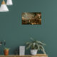 This is a reproduction of the fourth of Thomas Cole's five part series, “The Course of Empire". This fourth painting, "Destruction" depicts a landscape in which capital of empire is being destroyed. Raiders have apparently entered the city from an invasion fleet. They are ravaging the inhabitants of the city and have destroyed the major river bridge. There is a headless statue in the foreground and, of course, the boulder-topped mountain is still visible from the earlier paintings. The sea raiders may have been inspired by the Vandal sack of Rome in 455. The original canvas is 63.5 inches wide and 39.5 inches high and is in the New York Historical Society.