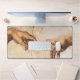 This desk mat features "The Creation of Adam", a section of Michelangelo's painting on the Sistine Chapel ceiling. It illustrates the Biblical story from the Book of Genesis in which God breathes life into the first man, Adam.