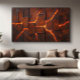 A hellish landscape of textures and colors. This work captures the raw power of the earth in eruption, with cracks revealing a burning fire and an intense palette of tones that evoke power, destruction, and the dark beauty of the underworld.
