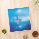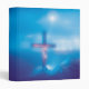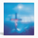 This image is of Christ on the cross during the crucifixion. A blue backround was used. The mountains where the cross was placed, was lit up by the sun shinning down to illuminate the cross and Jesus. The image was blurred out so you could make your own determination.